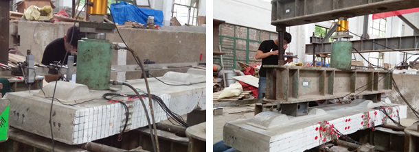 一、项目简介轨道板在工作情况下,会产生较大的横向振动,直接影响加工精度。对已有高铁轨道板在各种状态下(自由状态,工作固定状态)的动力学特性进行试验测试,掌握轨道板的动力学特性,结合有限元技术合理的修改轨道板的局部结构(诸如直径、厚度等),可以有效的控制控制锯片工作过程中的振动量级。二、测试设备TZT3827E 动静态信号测试分析系统混凝土应变片顶杆位移传感器声发射无损探伤TZTDAS动态信号测试分析系统软件笔记本电脑三、测试内容在轨道板预设部位安装应变片和顶杆位移计,通过压力机逐级加载,测试在自由状态和工作固定状态下,轨道板的应变和位移值四、现场图片