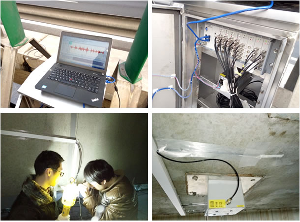 一、项目简介 绣针河大桥位于江苏、山东交界处,桩号为 K760+136,桥长997.72m,跨径组成为:2×(6×30)+3×(5×30)+6×30m。 2015年3月,江苏沿海高速公路有限公司组织各方为绣针河大桥右幅第四联、第五联安装了长期性能监测系统,为了考察桥梁的基本力学性能,选择典型桥跨,布置相应的动应变、动位移、索力等测点,组成箱梁健康监测系统,监测部分预应力混凝土箱梁在实际运行荷载作用下的基本力学性能,为类似桥梁的运营养护和维修加固提供有益参考和示范。数据采集设备共有2组,共32个测点,动应变测点16个,动位移测点8个,索力测点8个 各组采集设备通过以太网通讯,通过光纤将数据传输至远程监控室二、现场照片