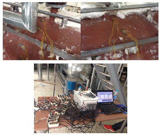 该项目主要测量压力容器在工作状态下表面产生的应变。以便对锅炉的长时使用安全性能做出评估。项目的主要特点是锅炉表面温度较高、采集时间较长,对设备的抗漂和长时工作稳定性都有很高的要求。实验采用了我公司的TZT5912动态信号采集系统,该设备具有抗干扰性好、长时工作稳定等优点。