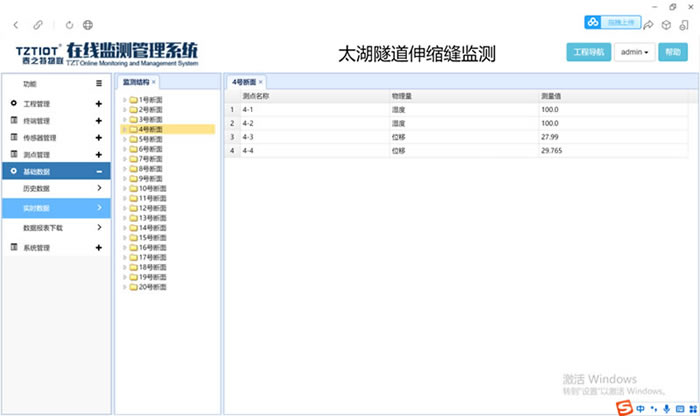 无锡太湖隧道伸缩缝监测项目运用的是温湿度传感器以及485位移传感器对隧道内的伸缩缝进行监测,主要测量隧道内的温度、湿度以及伸缩缝所产生的位移变化等物理量。无锡隧道建造于无锡太湖下,其主要部分处于河、海床下的岩土层中,常年在地下水位以下,承受着自水面开始至隧道埋深的全水头压力,虽然隧道全程做了防水处理,但是隧道中的湿度还是很大,对其进行温湿度的监测也显得尤为重要。